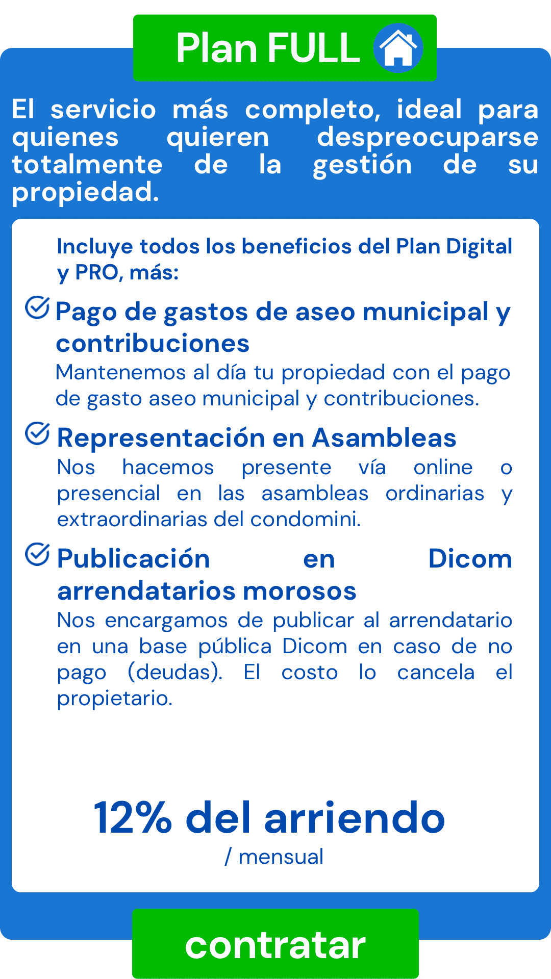 Recibe tu arriendo mes a mes, sin atrasos, sin complicaciones y con total transparencia. 10 años de experiencia gestionando propiedades como la tuya.